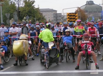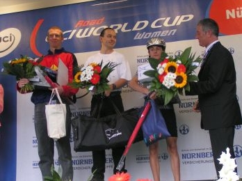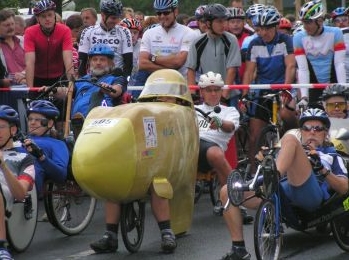 ![]() Nach dem Crashrennen in Holland war das Nürnberger Altstadtrennen erst das zweite Rennen in diesem Jahr. Leider konnte ich dieses Jahr aus Zeitgründen kaum trainieren und kam gerade einmal auf ein fünftel meines Trainingspensums von vor 2 Jahren, als ich beim Rennen in Nürnberg mit über 3 Minuten trotz regennasser Fahrbahn gewonnen hatte. Ziel meiner Teilnahme war bei hoffentlich günstigerem Wetter eine bessere Zeit als im Jahre 2002 zu erzielen. Damals kam ich nach 16min15sec ins Ziel. Nach sehr schönen Tagen kam aber, was kommen musste: Nach bereits nächtlichen Regenfällen begann es dann genau 8Uhr30 zum Start wieder kräftiger zu regnen. Nachdem ich am Abend davor nach Batteriewechsel für den Motor der verstellbaren Kopfhaube einen Wackelkontakt bemerkt hatte, war meine Hauptbefürchtung nun: kann ich während des Rennens eventuell die Kopfhaube nicht mehr verstellen und somit das Beschlagen nicht mehr unter Kontrolle halten? So versuchte ich am Start bereits so früh wie möglich einzusteigen und die Haube bereits soweit möglich zu schliessen und auch während der Fahrt nur in engen Grenzen zu verstellen.